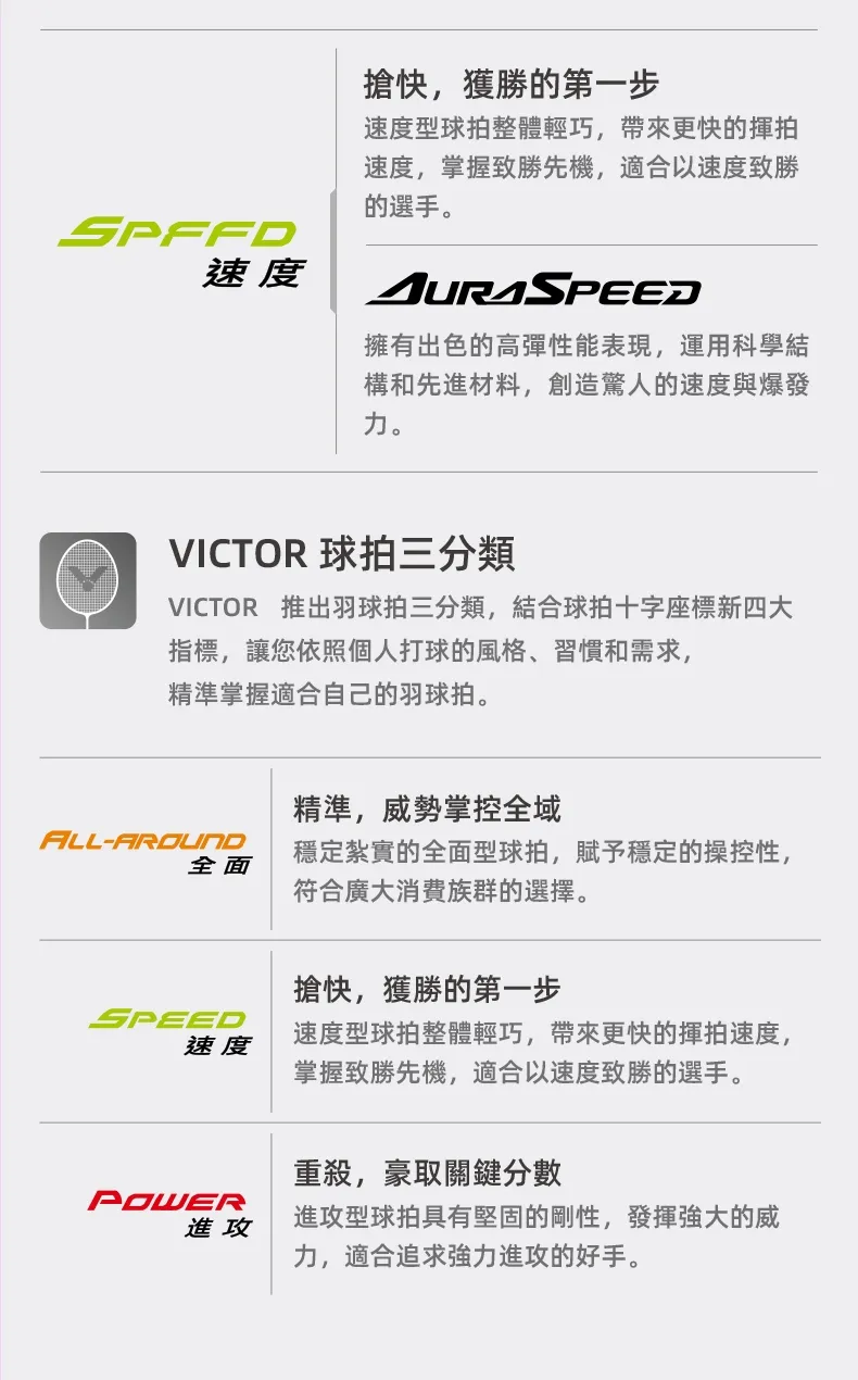 VICTOR 神速 影刃羽球拍 AURASPEED FANTÔME F AC